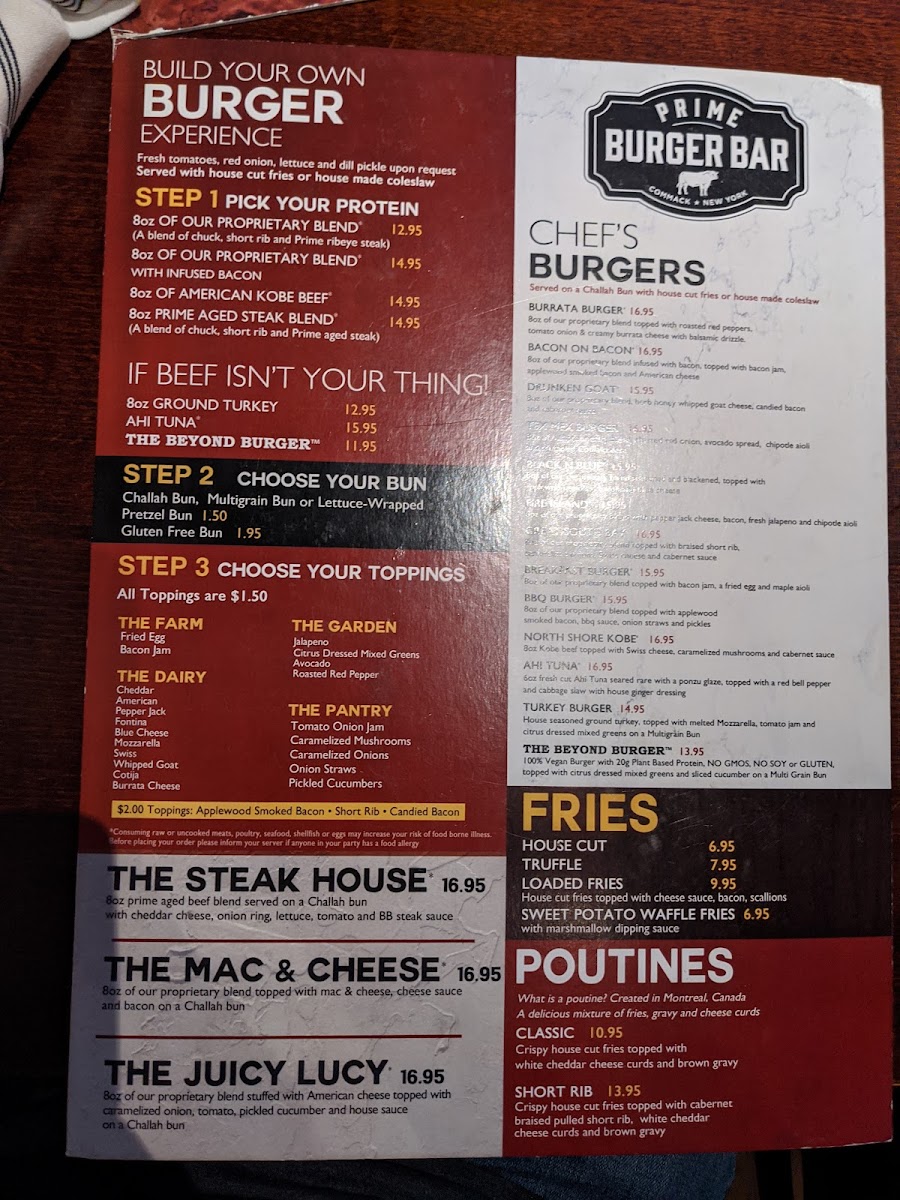 Welcome to Prime Burger Bar, a hidden gem located at 6092 Jericho Tpke, Commack, NY. Step inside for an unforgettable dining experience featuring an impressive array of mouth-watering burgers, including the renowned Great South Bay topped with braised short rib and Swiss cheese—a fan favorite that showcases the bar’s commitment to quality.